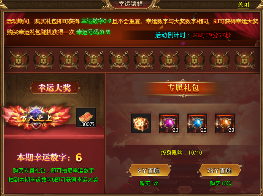 2、【新增】幸运锦鲤,用户购买天选礼包(6元)后显示